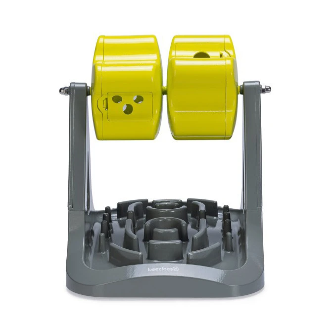 Beeztees Hondenspeelgoed Brain Game Rodar is een te gek denkspel voor de hond. Het trainingsspel is gemaakt van plastic en beschikt over twee rollers waar hondensnoepjes in verstopt kunnen worden. Zodra jouw hond aan deze rollers draait, met zijn of haar poot of snuit, kunnen de snoepjes uit de rollers vallen. Ze worden geleverd met drie verschillende klepjes. De klepjes hebben een, twee of drie gaten, zo kun jij zelf de moeilijkheidsgraad bepalen. Zodra het hondensnoepje uit de snack roller valt, komt dit terecht in het antischrokgedeelte. Ook hier dient jouw hond weer tussen de diverse uitstulpingen op zoek te gaan naar zijn of haar beloning.